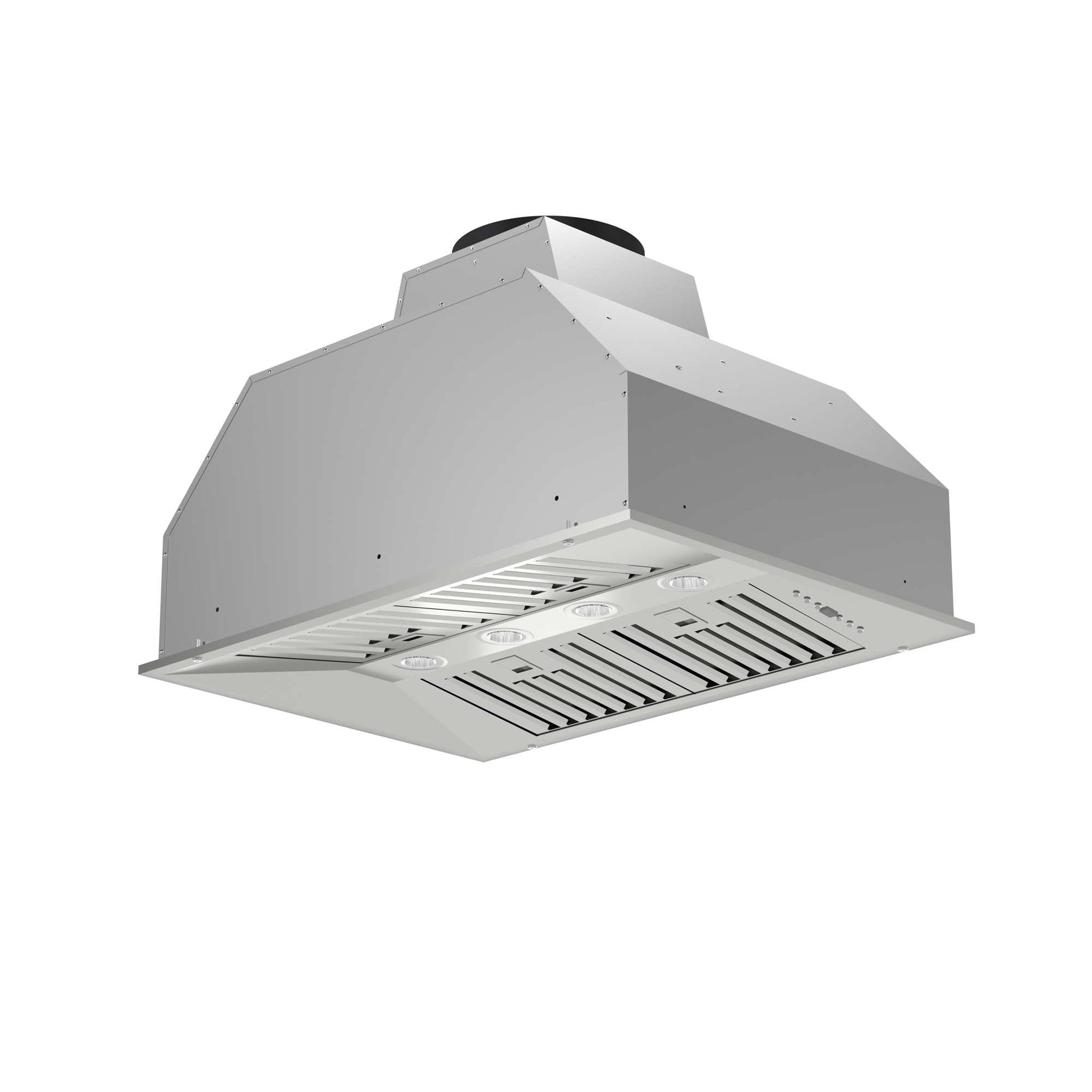 * This insert range hood is designed to fit seamlessly into surface custom cabinetry installation or hood enclosure.
