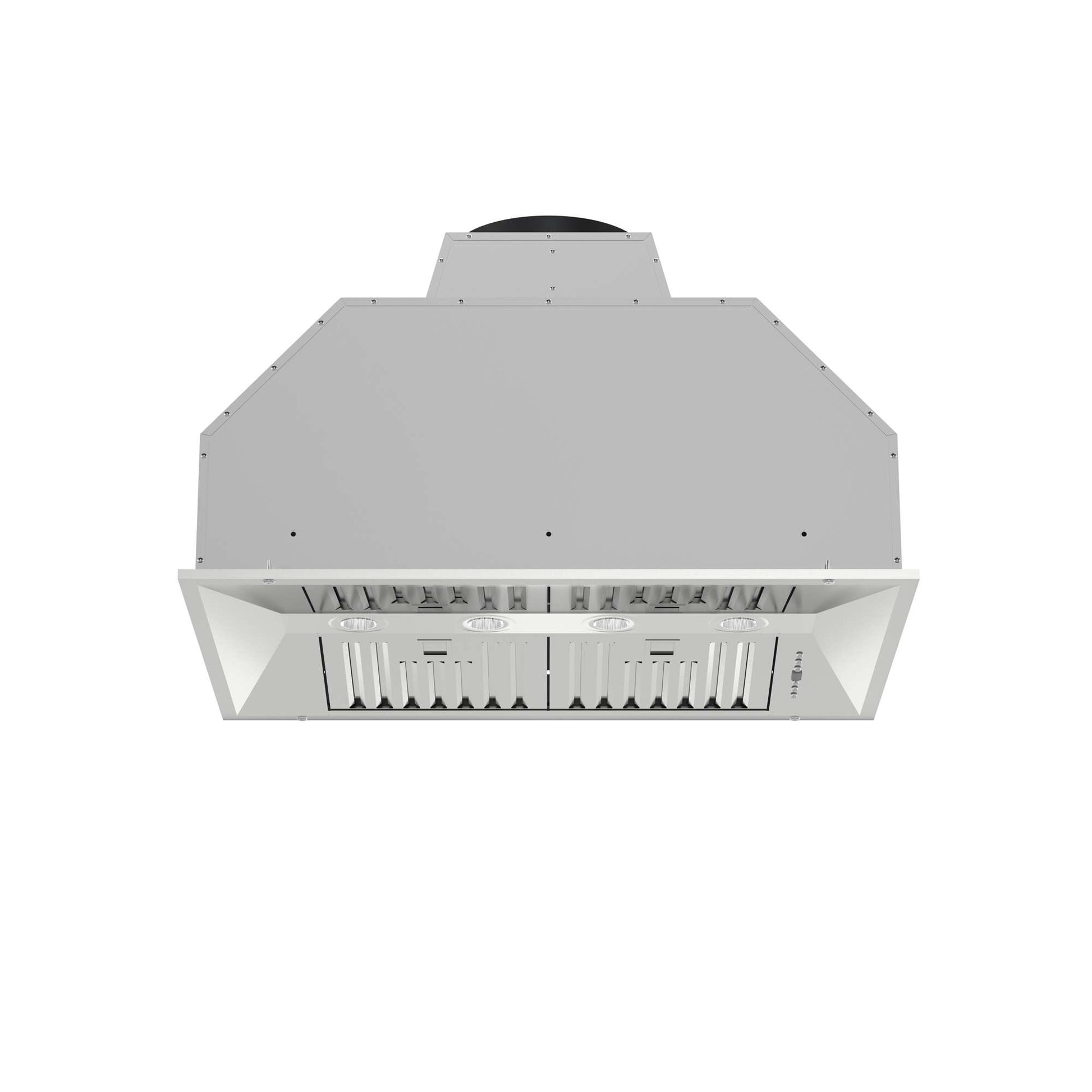 * This insert rangehood is equipped with a powerful energy-efficient 1200 CFM, designed to capture smoke, gases, steam and grease to keep your cooking area free of unwanted odors.