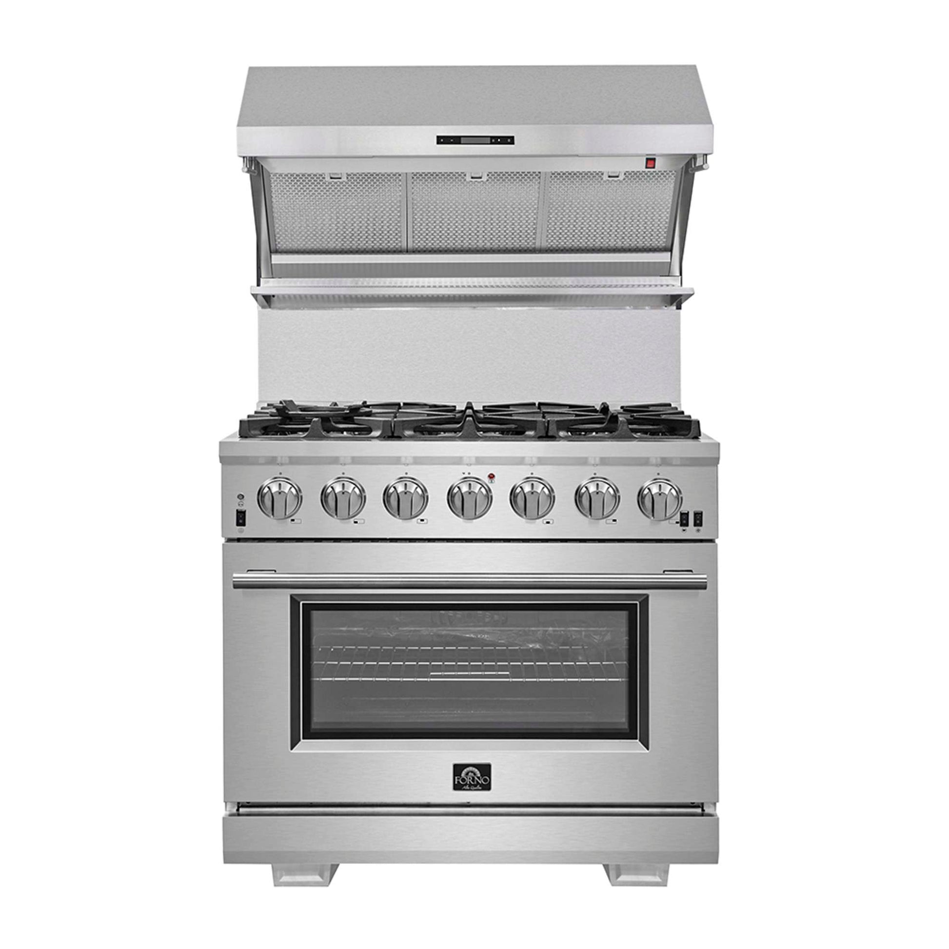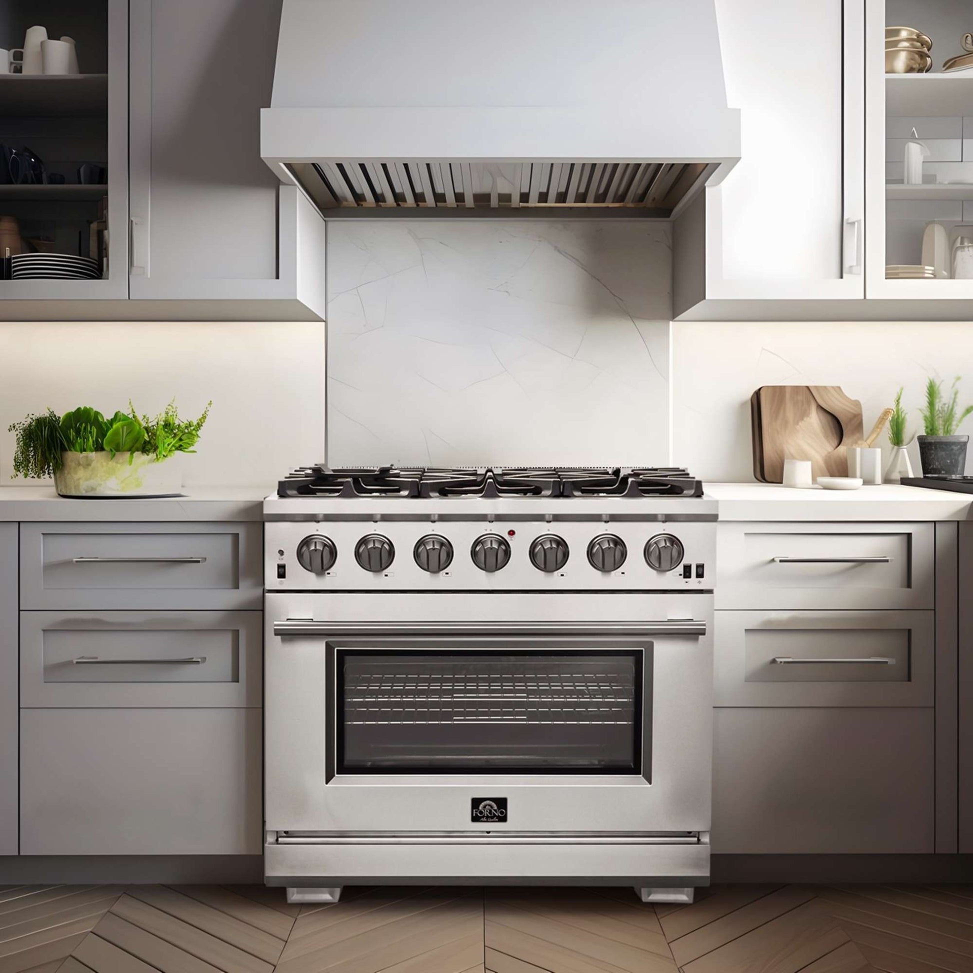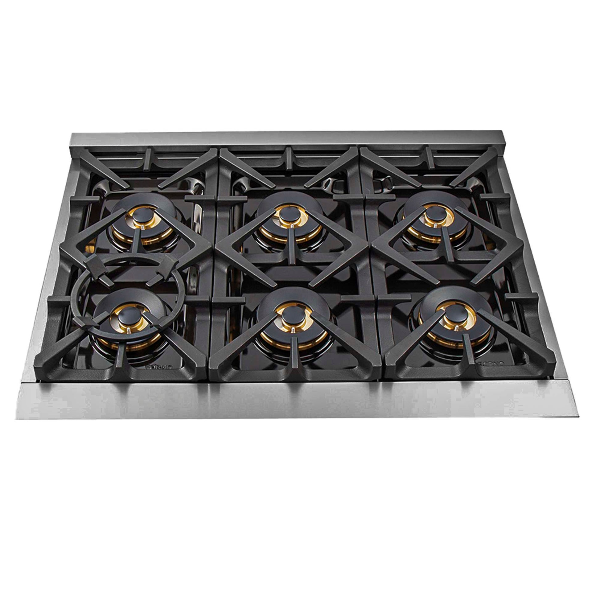 FORNO Capriasca 36-inch Gas Range Stainless Steel, 6 Brass Burners 120,000 BTU, 5.36 cu.ft. Single Oven