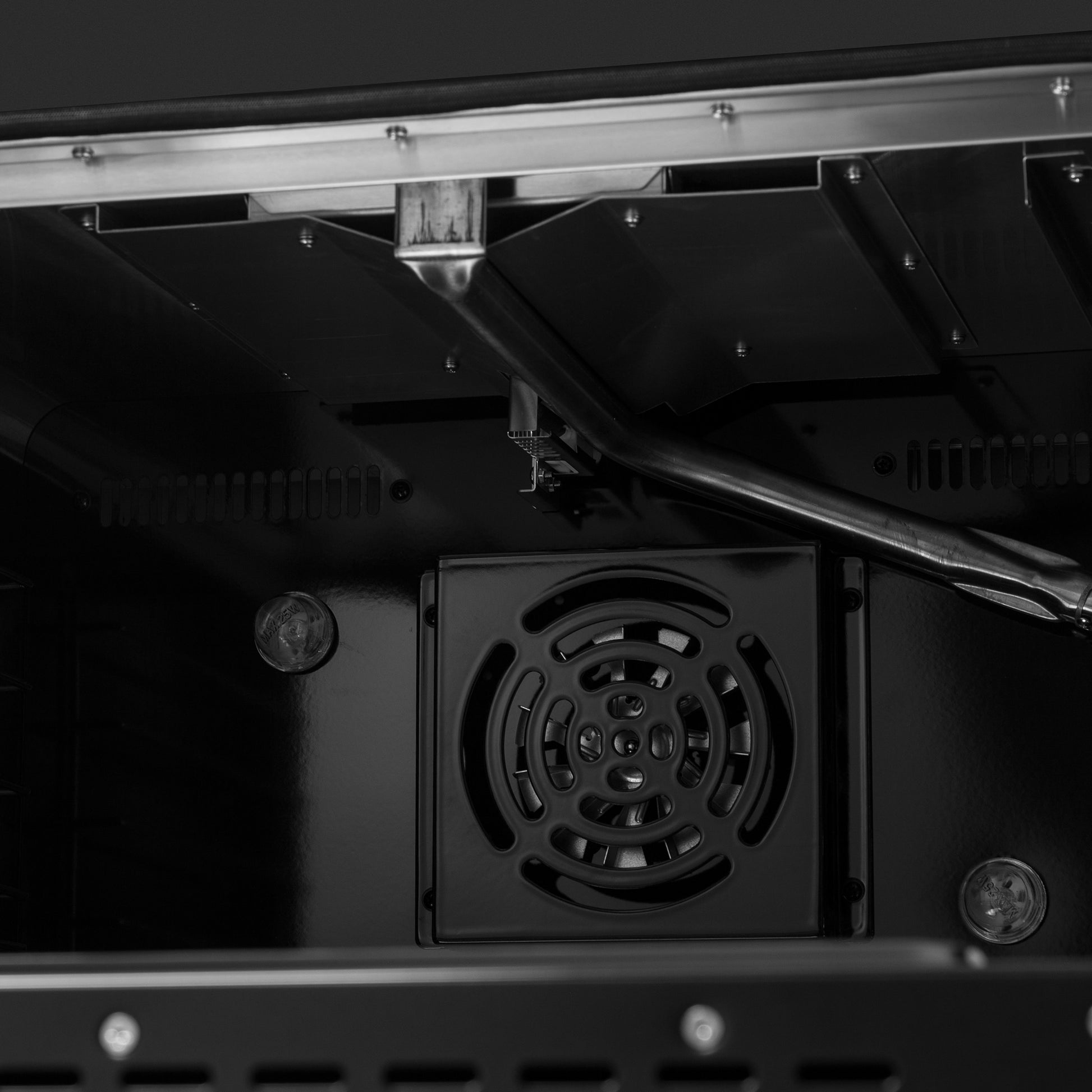 The 48-Inch Forno Galiano Gas Range combines professional-grade performance with bold elegance. Featuring a sleek black finish accented by antique brass hardware, it brings a statement of style and durability to your kitchen. With 8 sealed burners delivering a total output of 107,000 BTU, including a 20,000 BTU dual-ring burner capable of simmering at 1,000 BTU, this range provides the versatility to handle any culinary challenge. Continuous cast iron grates ensure stability and effortless cookware movement on the durable enamel cooktop. Bake, roast, or broil with precision using the 4.32 cu.ft. convection main oven with 30,000 BTU total output for even heat distribution. The 2.26 cu.ft. secondary oven, featuring a 14,000 BTU bake output, allows you to prepare multiple dishes at once. Both ovens boast enamel interiors for effortless cleaning and three-layer glass doors for superior heat retention and visibility. Convenience meets functionality with two racks per oven, a reversible griddle, and an LP conversion kit for flexible installation. Backed by Forno's 2-year warranty, this gas range delivers powerful performance, enduring style, and complete peace of mind. Forno, Lower the cost of living.