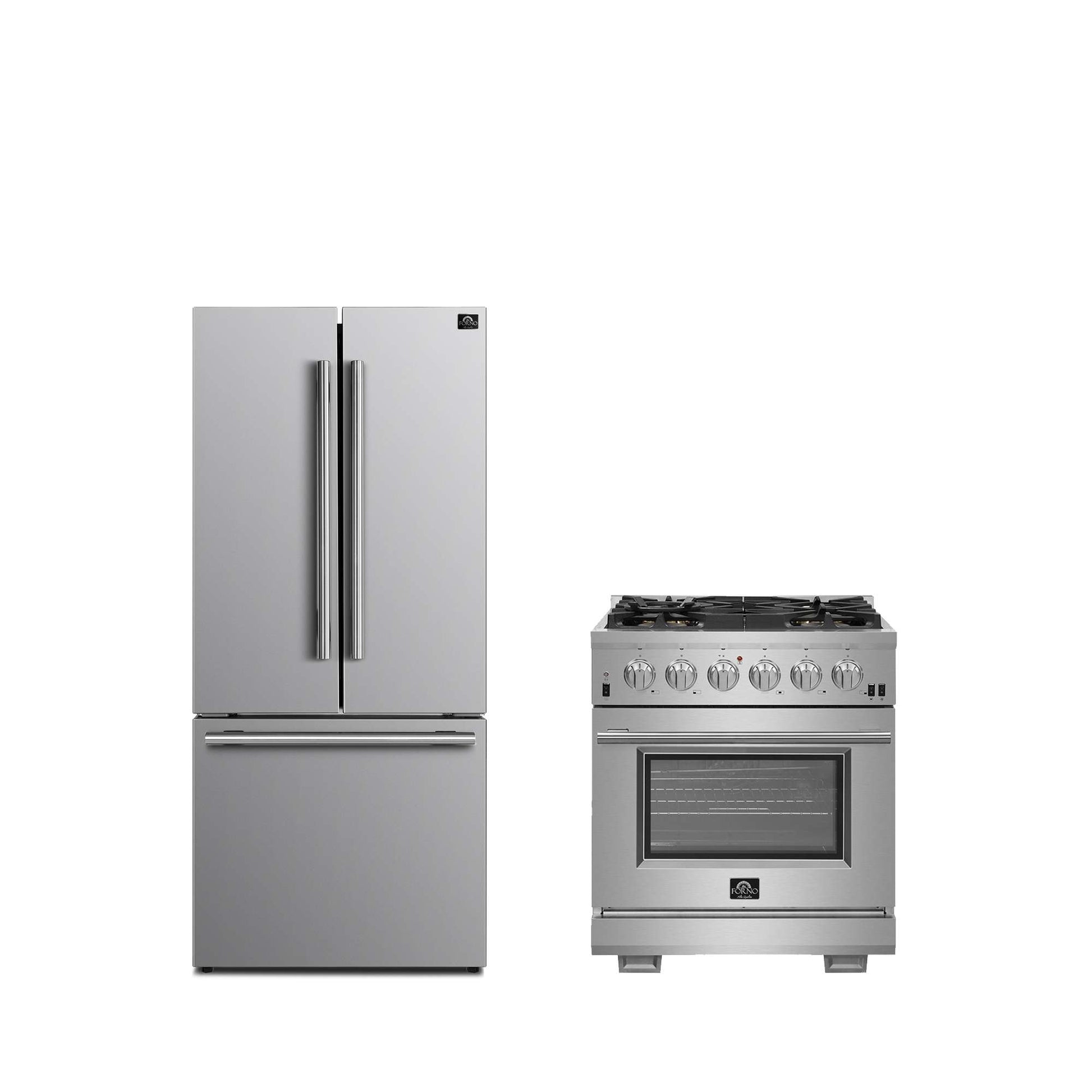 FORNO Premium 2-Piece Kitchen Bundle - Capriasca 30" Stainless Steel Range, Forno Gallipoli 30" French Door Refrigerator with Bottom Freezer 17.5 cu. ft Capacity