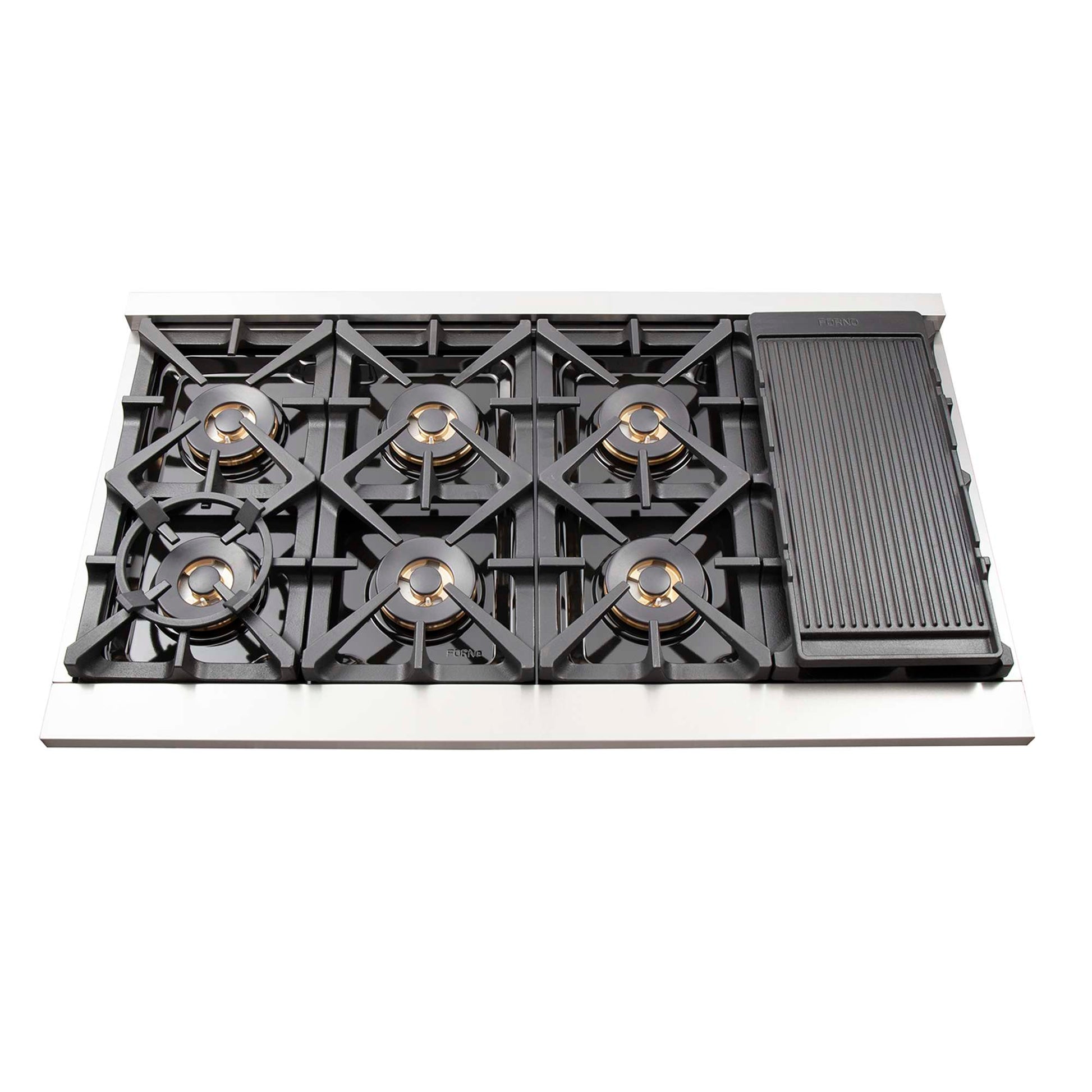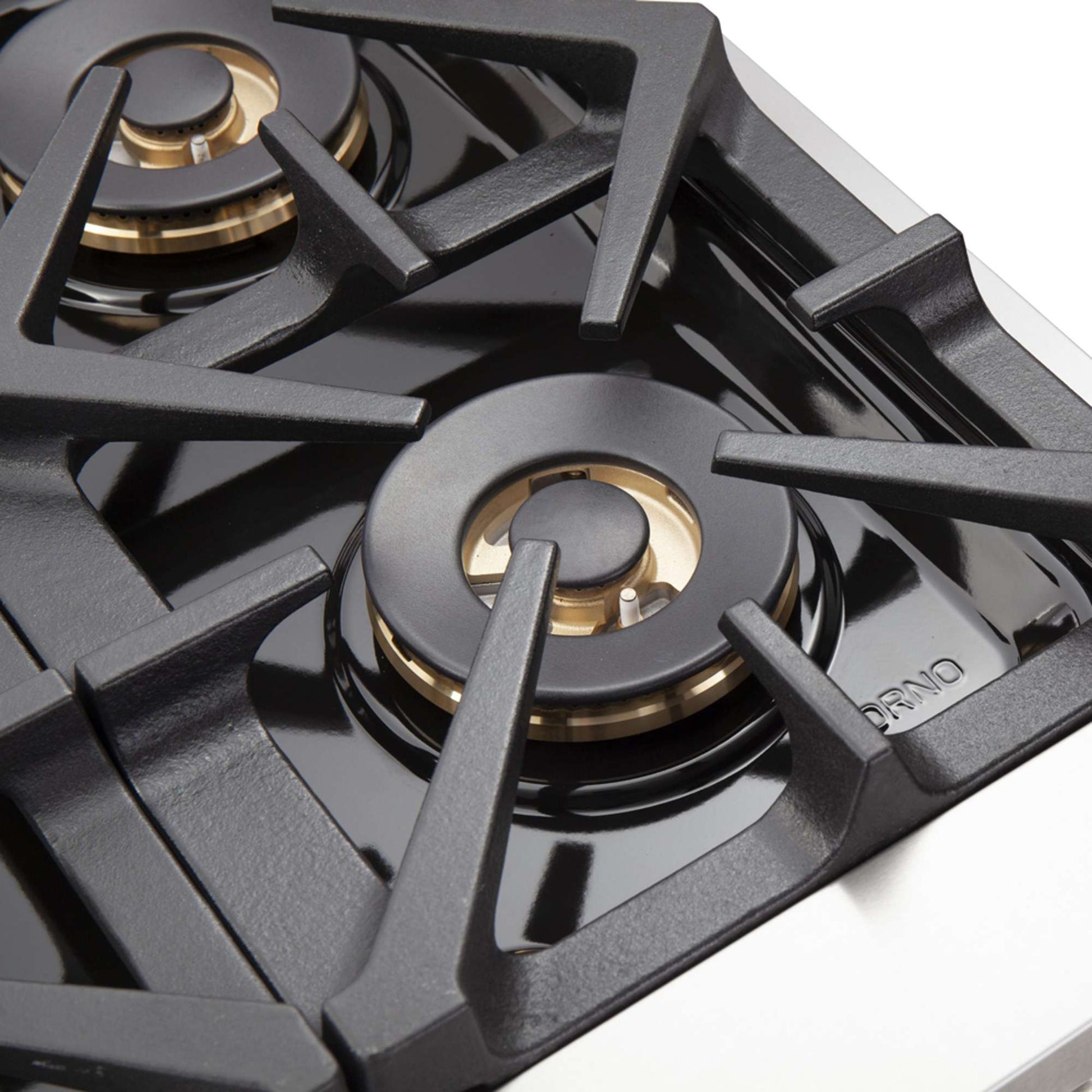 * Range: Sealed Dual-Ring Brass Burners can achieve high heat searing or delicate simmering control
