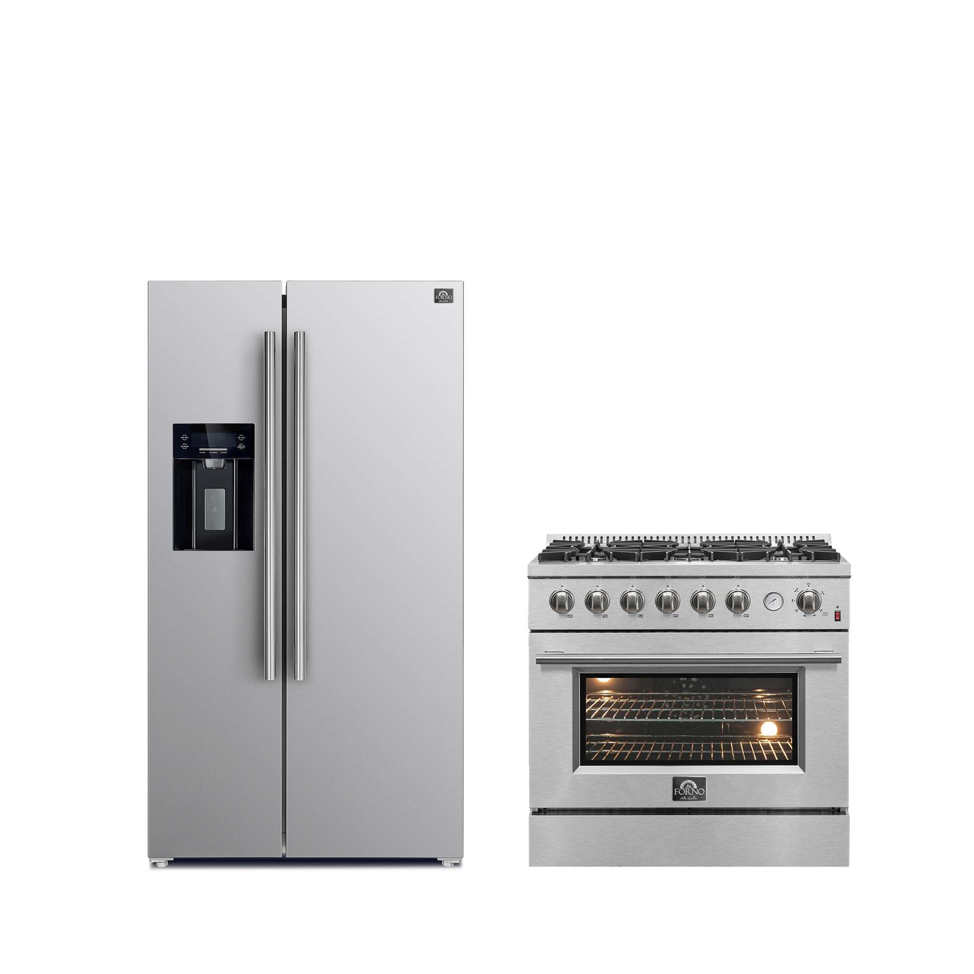 FORNO Premium 2-Piece Kitchen Bundle -Marco 30-inch Gas Range Stainless Steel, Forno Salerno 36" Side by Side Stainless Steel Refrigerator 20 cu.ft
